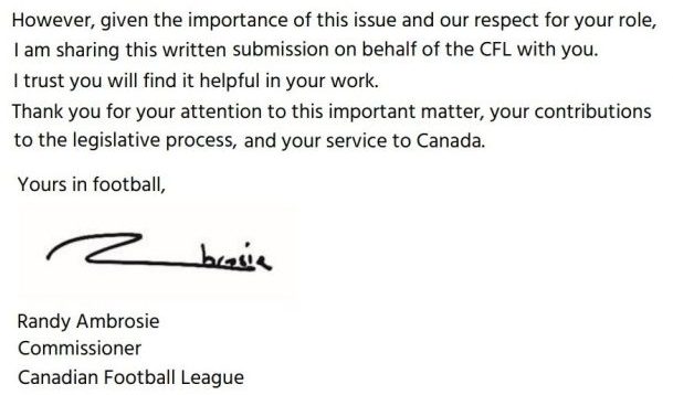 Parliament must allow professional sports to self-regulate gambling promotions, says CFL Commissioner Randy Ambrosie. The Canadian Football League in a letter to senators said federal controls were unnecessary: “We do not agree.”