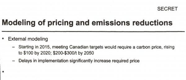 Environment Canada says a secret memo warning of a $300 per tonne carbon tax is hypothetical. Staff testifying at the Senate energy committee said they were unaware of the federal document, published by Blacklock’s March 29: “So, the question is — ?”