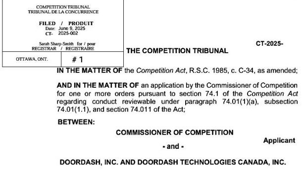 U.S. based Door Dash Inc. yesterday accused Canadian anti-trust lawyers of “an overly punitive attempt” to challenge its business model. The federal Competition Bureau accused the delivery company of pocketing millions through misleading advertising: “This application is an overly punitive attempt to make an example of an industry leader.”
