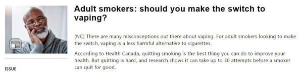 The Department of Public Works yesterday approved a $2.5 million contract to distribute federally-sponsored “news” to publishers and radio stations. Handout stories include one saying its “nice” to fly with cannabis in your luggage, and articles citing a Health Canada endorsement of vaping: “There are short-term general health improvements…”