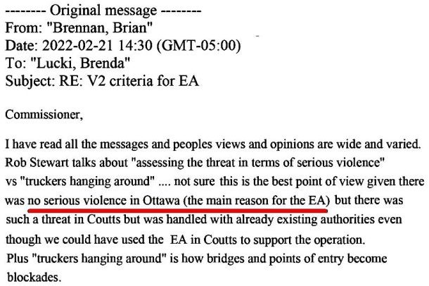 RCMP in an internal email acknowledged there was “no serious violence in Ottawa” with the Freedom Convoy despite claims by Public Safety Minister Marco Mendicino. One police commander said allegations of violence were “the main reason for the Emergencies Act.”