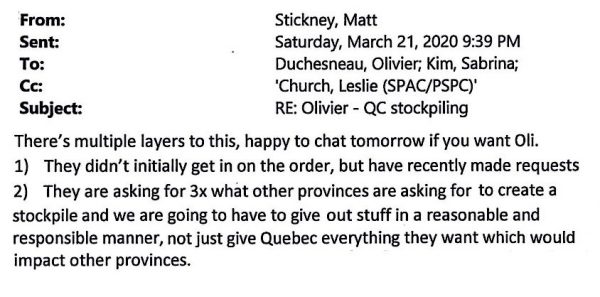 Staff in the Prime Minister’s Office grumbled Québec asked for too many rationed medical supplies only days into the pandemic, internal records show. A national emergency stockpile had virtually run out after the Public Health Agency threw away millions of masks and other items months before: “Hey, we asked for this stuff and we’re not getting it.”
