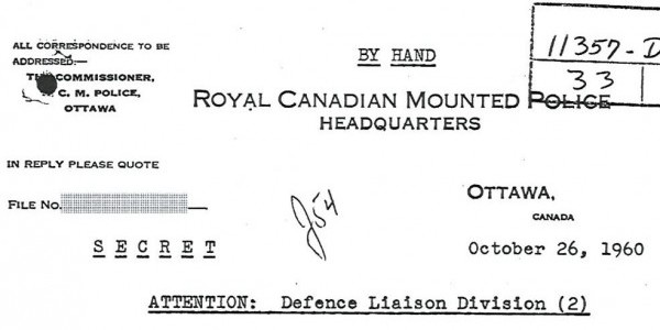 Documents released by Library & Archives Canada detail surveillance files dating from 1959 to 1963. The memos run to 669 pages detailing reports from police informants and staff with the Department of External Affairs.