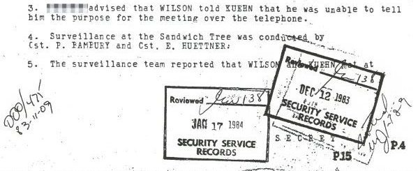 Police eavesdropped on Kuehn’s conversations with protest organizers, and on November 2, 1983 assigned two police to follow Kuehn as he met at a Vancouver diner with a local Communist Party member. The two spoke for 20 minutes, according to a surveillance report. “The individuals were too far away for any of their conversation to be overheard,” said the memo.