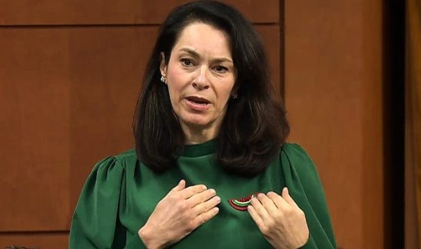 New Democrat MP Heather McPherson (Edmonton Strathcona) yesterday was reprimanded by the Commons Speaker for wearing a lapel pin proclaiming support for Palestinians. MPs jeered after McPherson compared her “solidarity” pin to wearing a Remembrance Day poppy: “No!”