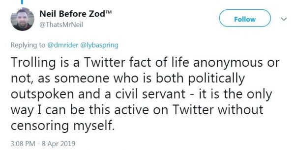 “Some of us have employment that could be adversely affected by Twitter activism,” read one Zod tweet: “I am a lifelong Liberal. I lean left, and belong to a public service union.”
